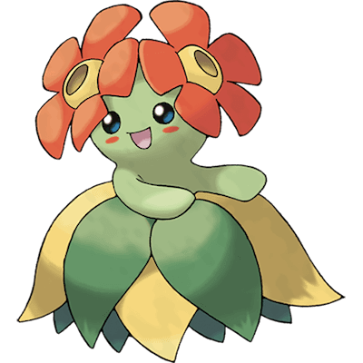 A BELLOSSOM grows flowers more beautifully if it has evolved from a smelly GLOOM - the stinkier the better. At night, this POKéMON closes its petals and goes to sleep.