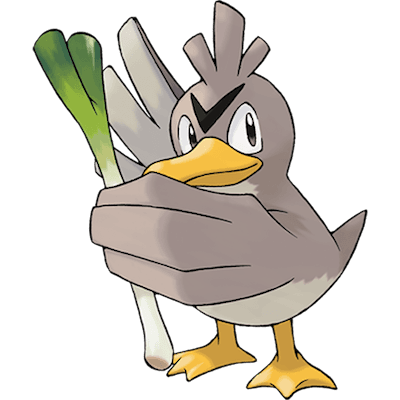Farfetch’d is always seen with a stalk from a plant of some sort. Apparently, there are good stalks and bad stalks. This Pokémon has been known to fight with others over stalks.